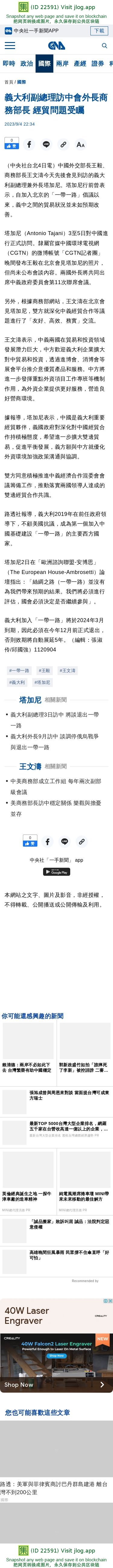 義大利副總理訪中會外長商務部長 經貿問題受矚 | 國際 | 中央社 CNA
