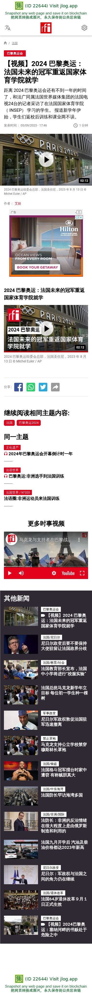 新闻原始地址:https://www.rfi.fr/cn/%E6%B3%95%E5%9B%BD/20230905-%E8%A7%86%E9%A2%91-2024-%E5%B7%B4%E9%BB%8E%E5%A5%A5%E8%BF%90-%E6%B3%95%E5%9B%BD%E6%9C%AA%E6%9D%A5%E7%9A%84%E5%86%A0%E5%86%9B%E9%87%8D%E8%BF%94%E5%9B%BD%E5%AE%B6%E4%BD%93%E8%82%B2%E5%AD%A6%E9%99%A2%E5%B0%B1%E5%AD%A6