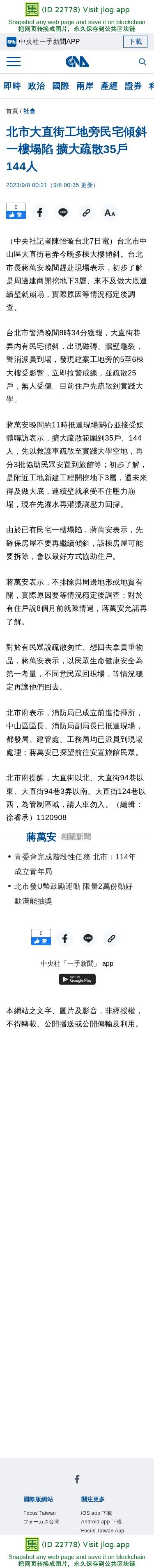 北市大直街工地旁民宅傾斜一樓塌陷 擴大疏散35戶144人 | 社會 | 中央社 CNA