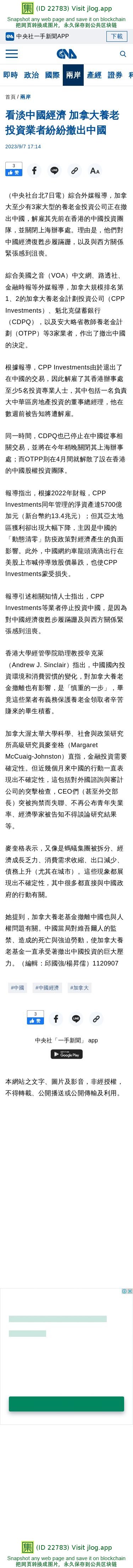 看淡中國經濟 加拿大養老投資業者紛紛撤出中國 | 兩岸 | 中央社 CNA