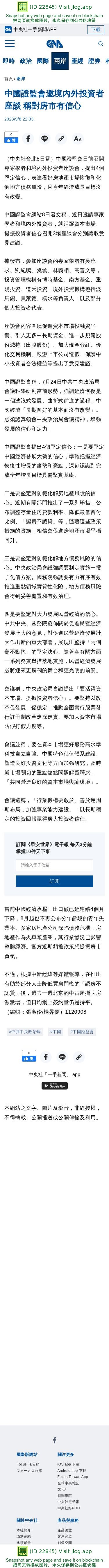 中國證監會邀境內外投資者座談 稱對房市有信心 | 兩岸 | 中央社 CNA
