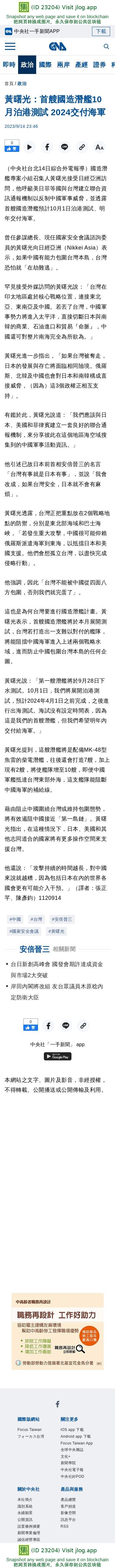 黃曙光:首艘國造潛艦10月泊港測試 2024交付海軍 | 政治 | 中央社 CNA