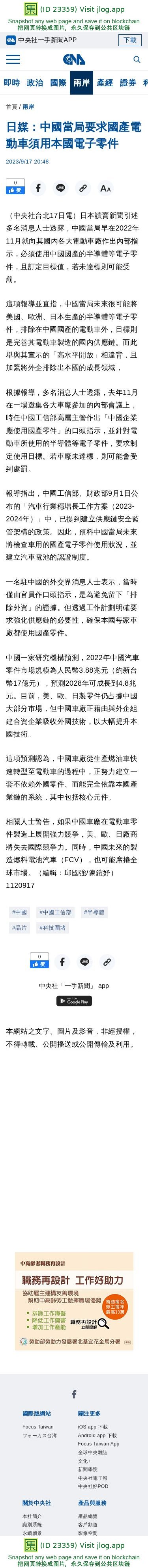 日媒:中國當局要求國產電動車須用本國電子零件 | 兩岸 | 中央社 CNA
