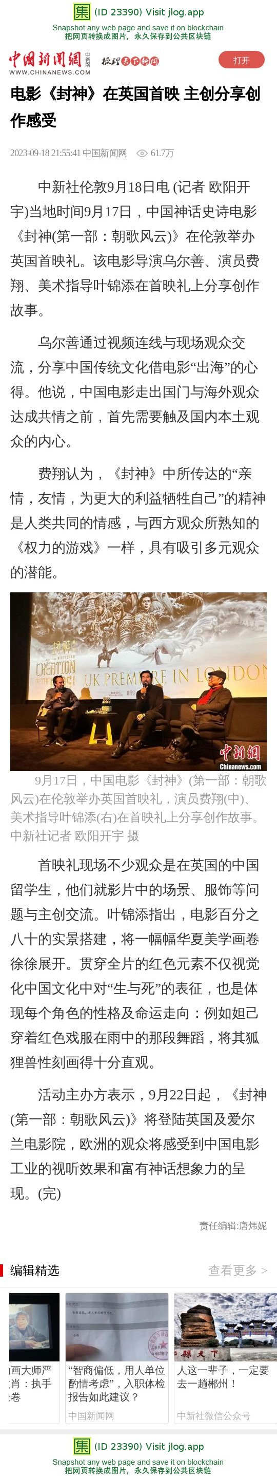 电影《封神》在英国首映 主创分享创作感受