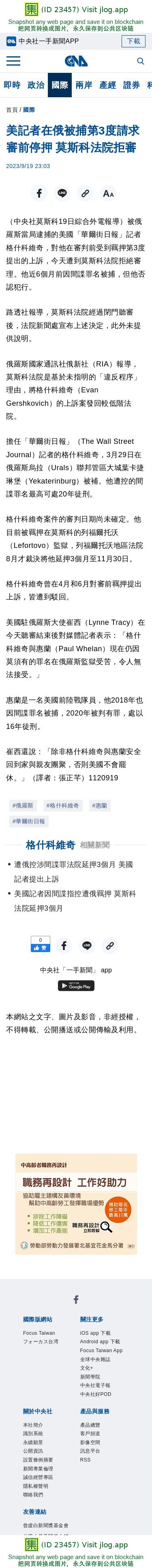 美記者在俄被捕第3度請求審前停押 莫斯科法院拒審 | 國際 | 中央社 CNA