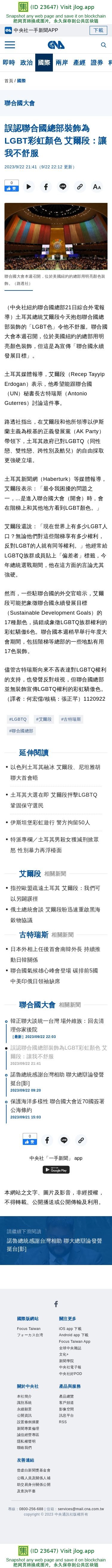 誤認聯合國總部裝飾為LGBT彩虹顏色 艾爾段:讓我不舒服 | 國際 | 中央社 CNA