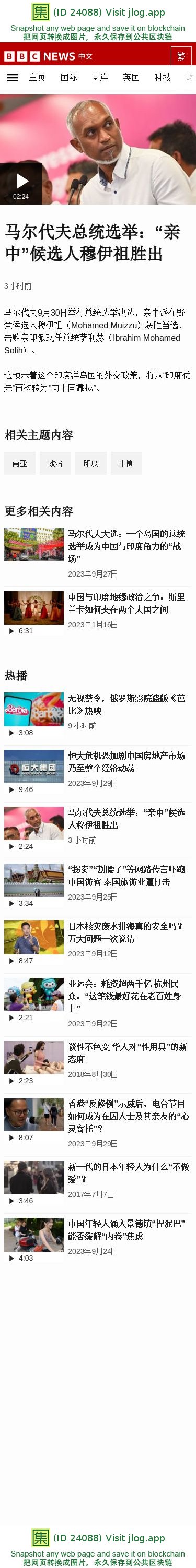马尔代夫总统选举:“亲中”候选人穆伊祖胜出 - BBC News 中文