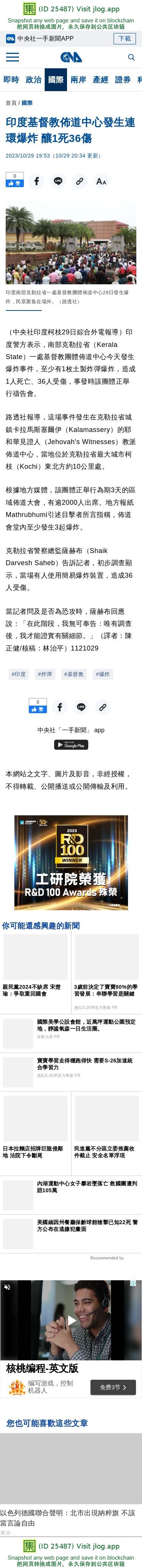 印度基督教佈道中心發生連環爆炸 釀1死36傷 | 國際 | 中央社 CNA