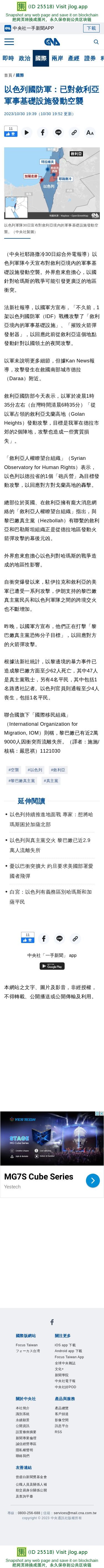 以色列國防軍:已對敘利亞軍事基礎設施發動空襲 | 國際 | 中央社 CNA