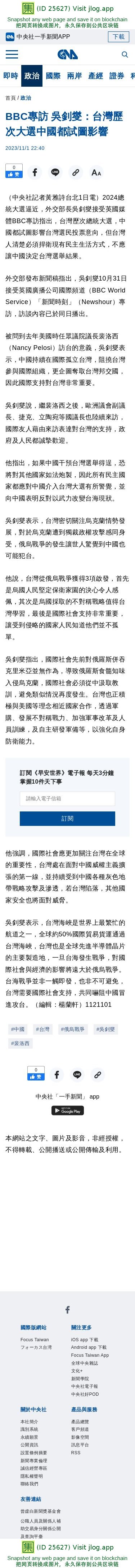 BBC專訪 吳釗燮:台灣歷次大選中國都試圖影響 | 政治 | 中央社 CNA