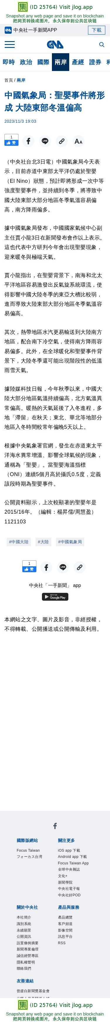 中國氣象局:聖嬰事件將形成 大陸東部冬溫偏高 | 兩岸 | 中央社 CNA