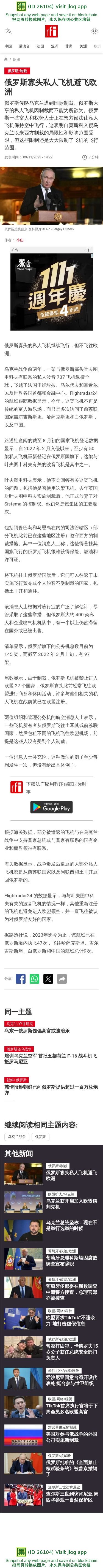 新闻原始地址:https://www.rfi.fr/cn/%E6%AC%A7%E6%B4%B2/20231109-%E4%BF%84%E7%BD%97%E6%96%AF%E5%AF%A1%E5%A4%B4%E7%A7%81%E4%BA%BA%E9%A3%9E%E6%9C%BA%E9%81%BF%E9%A3%9E%E6%AC%A7%E6%B4%B2