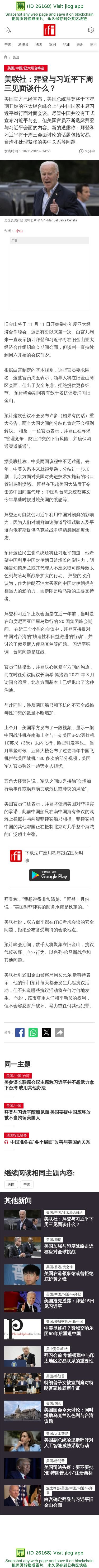 新闻原始地址:https://www.rfi.fr/cn/%E7%BE%8E%E5%9B%BD/20231110-%E7%BE%8E%E8%81%94%E7%A4%BE-%E6%8B%9C%E7%99%BB%E4%B8%8E%E4%B9%A0%E8%BF%91%E5%B9%B3%E4%B8%8B%E5%91%A8%E4%B8%89%E8%A7%81%E9%9D%A2%E8%B0%88%E4%BB%80%E4%B9%88