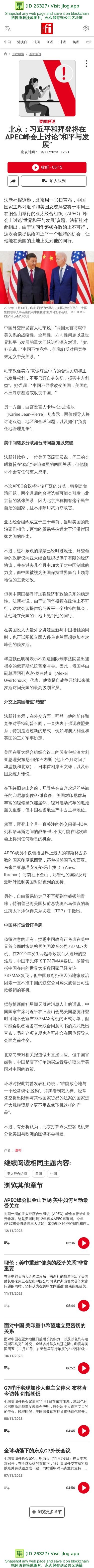 新闻原始地址:https://www.rfi.fr/cn/%E4%B8%93%E6%A0%8F%E6%A3%80%E7%B4%A2/%E8%A6%81%E9%97%BB%E8%A7%A3%E8%AF%B4/20231113-%E5%8C%97%E4%BA%AC-%E4%B9%A0%E8%BF%91%E5%B9%B3%E5%92%8C%E6%8B%9C%E7%99%BB%E5%B0%86%E5%9C%A8apec%E5%B3%B0%E4%BC%9A%E4%B8%8A%E8%AE%A8%E8%AE%BA-%E5%92%8C%E5%B9%B3%E4%B8%8E%E5%8F%91%E5%B1%95
