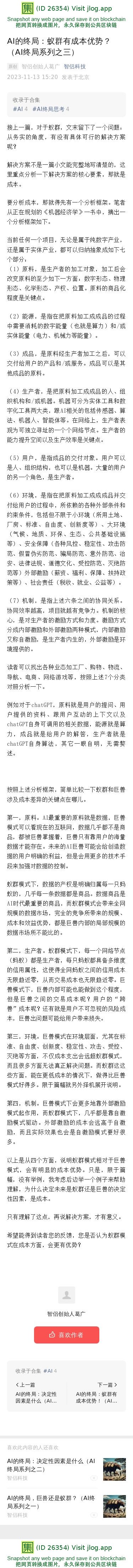 AI的终局:蚁群有成本优势?(AI终局系列之三)