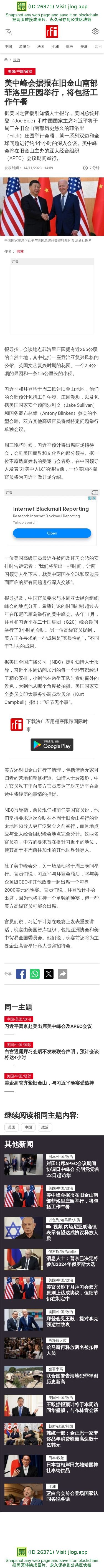 新闻原始地址:https://www.rfi.fr/cn/%E6%94%BF%E6%B2%BB/20231114-%E7%BE%8E%E4%B8%AD%E5%B3%B0%E4%BC%9A%E6%8D%AE%E6%8A%A5%E5%9C%A8%E6%97%A7%E9%87%91%E5%B1%B1%E5%8D%97%E9%83%A8%E8%8F%B2%E6%B4%9B%E9%87%8C%E5%BA%84%E5%9B%AD%E4%B8%BE%E8%A1%8C%EF%BC%8C%E5%B0%86%E5%8C%85%E6%8B%AC%E5%B7%A5%E4%BD%9C%E5%8D%88%E9%A4%90
