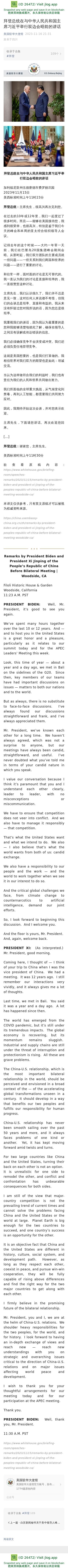 拜登总统在与中华人民共和国主席习近平举行双边会晤前的讲话