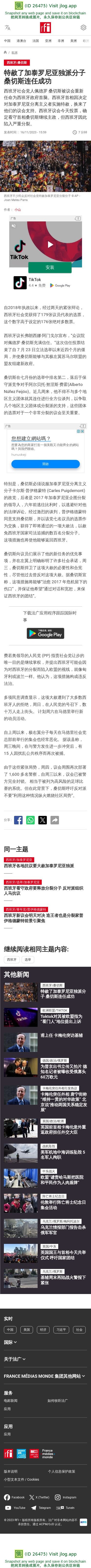 新闻原始地址:https://www.rfi.fr/cn/%E6%AC%A7%E6%B4%B2/20231116-%E7%89%B9%E8%B5%A6%E4%BA%86%E5%8A%A0%E6%B3%B0%E7%BD%97%E5%B0%BC%E4%BA%9A%E7%8B%AC%E6%B4%BE%E5%88%86%E5%AD%90-%E6%A1%91%E5%88%87%E6%96%AF%E8%BF%9E%E4%BB%BB%E6%88%90%E5%8A%9F