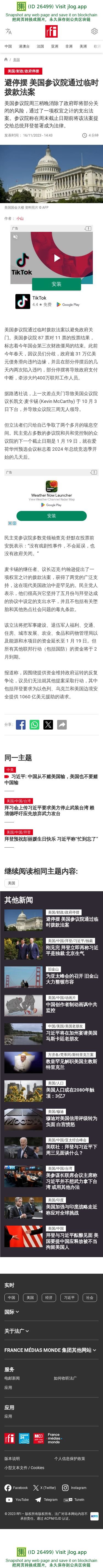 新闻原始地址:https://www.rfi.fr/cn/%E7%BE%8E%E5%9B%BD/20231116-%E9%81%BF%E5%81%9C%E6%91%86-%E7%BE%8E%E5%9B%BD%E5%8F%82%E8%AE%AE%E9%99%A2%E9%80%9A%E8%BF%87%E4%B8%B4%E6%97%B6%E6%8B%A8%E6%AC%BE%E6%B3%95%E6%A1%88