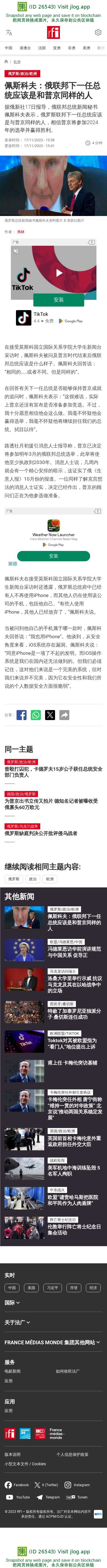 新闻原始地址:https://www.rfi.fr/cn/%E6%AC%A7%E6%B4%B2/20231117-%E4%BD%A9%E6%96%AF%E7%A7%91%E5%A4%AB-%E4%BF%84%E8%81%94%E9%82%A6%E4%B8%8B%E4%B8%80%E4%BB%BB%E6%80%BB%E7%BB%9F%E5%BA%94%E8%AF%A5%E6%98%AF%E5%92%8C%E6%99%AE%E4%BA%AC%E5%90%8C%E6%A0%B7%E7%9A%84%E4%BA%BA