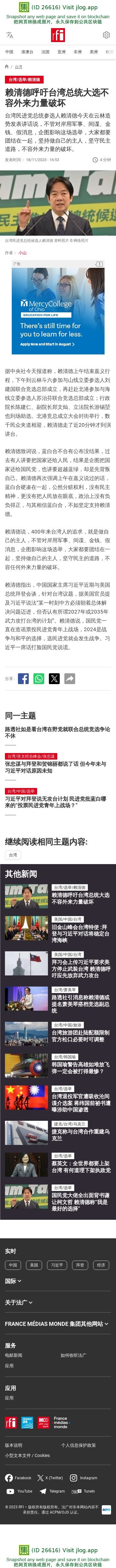 新闻原始地址:https://www.rfi.fr/cn/%E5%8F%B0%E6%B9%BE/20231118-%E8%B5%96%E6%B8%85%E5%BE%B7%E5%91%BC%E5%90%81%E5%8F%B0%E6%B9%BE%E6%80%BB%E7%BB%9F%E5%A4%A7%E9%80%89%E4%B8%8D%E5%AE%B9%E5%A4%96%E6%9D%A5%E5%8A%9B%E9%87%8F%E7%A0%B4%E5%9D%8F