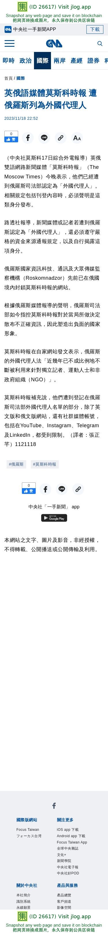 英俄語媒體莫斯科時報 遭俄羅斯列為外國代理人 | 國際 | 中央社 CNA
