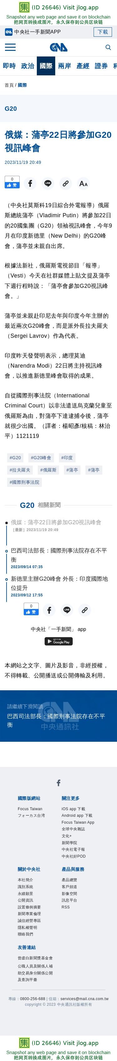 俄媒:蒲亭22日將參加G20視訊峰會 | 國際 | 中央社 CNA