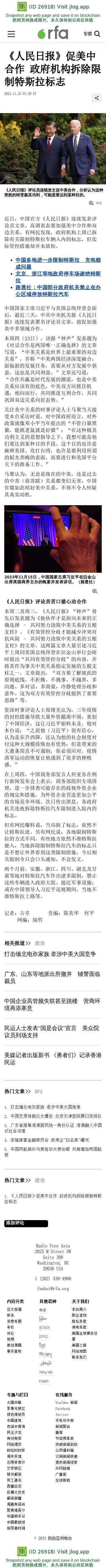 《人民日报》促美中合作 政府机构拆除限制特斯拉标志 — 普通话主页