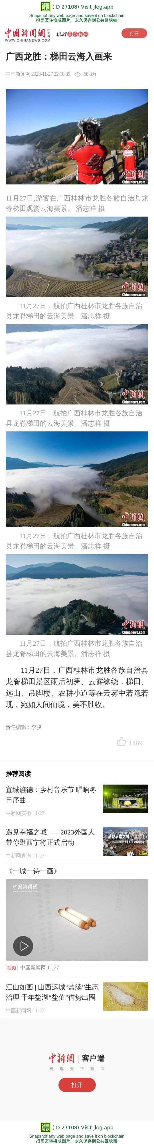 广西龙胜:梯田云海入画来
