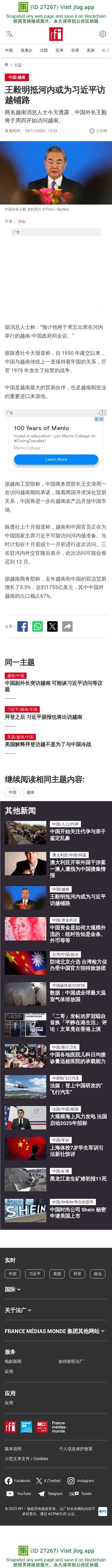 新闻原始地址:https://www.rfi.fr/cn/%E4%B8%AD%E5%9B%BD/20231129-%E7%8E%8B%E6%AF%85%E6%98%8E%E6%8A%B5%E6%B2%B3%E5%86%85%E6%88%96%E4%B8%BA%E4%B9%A0%E8%BF%91%E5%B9%B3%E8%AE%BF%E8%B6%8A%E9%93%BA%E8%B7%AF