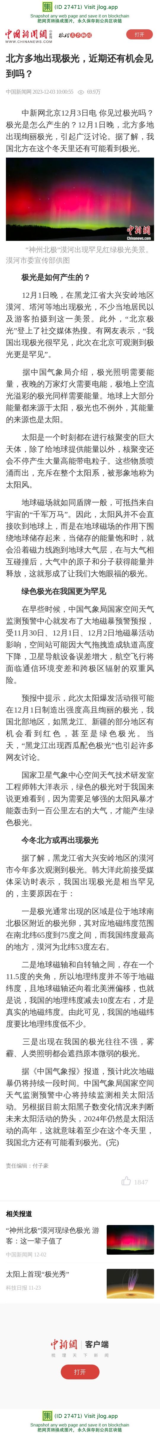 北方多地出现极光,近期还有机会见到吗?