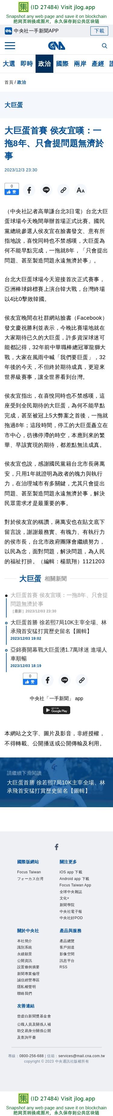 大巨蛋首賽 侯友宜嘆:一拖8年、只會提問題無濟於事 | 政治 | 中央社 CNA