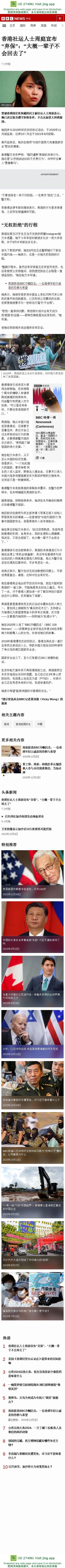 香港社运人士周庭宣布“弃保”:“大概一辈子不会回去了” - BBC News 中文