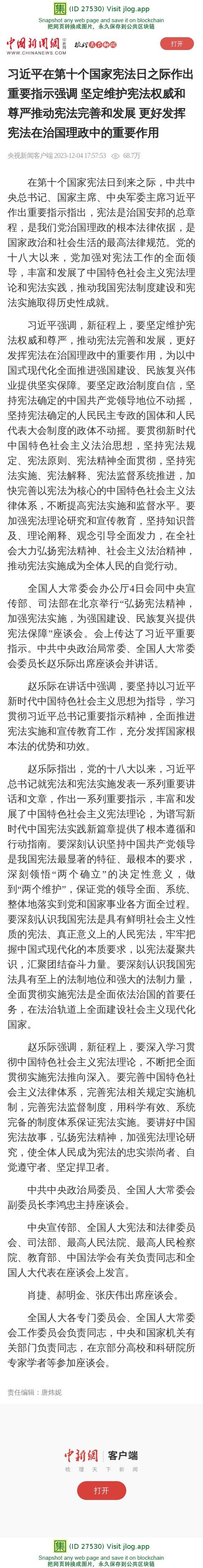 习近平在第十个国家宪法日之际作出重要指示强调 坚定维护宪法权威和尊严推动宪法完善和发展 更好发挥宪法在治国理政中的重要作用