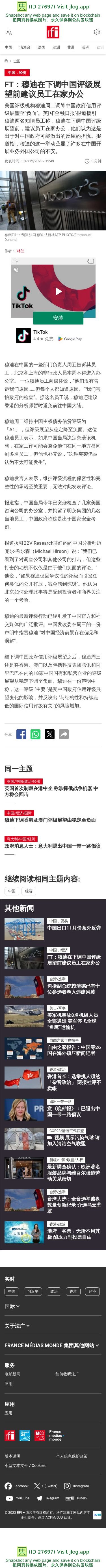 新闻原始地址:https://www.rfi.fr/cn/%E4%B8%AD%E5%9B%BD/20231207-ft-%E7%A9%86%E8%BF%AA%E5%9C%A8%E4%B8%8B%E8%B0%83%E4%B8%AD%E5%9B%BD%E8%AF%84%E7%BA%A7%E5%B1%95%E6%9C%9B%E5%89%8D%E5%BB%BA%E8%AE%AE%E5%91%98%E5%B7%A5%E5%9C%A8%E5%AE%B6%E5%8A%9E%E5%85%AC