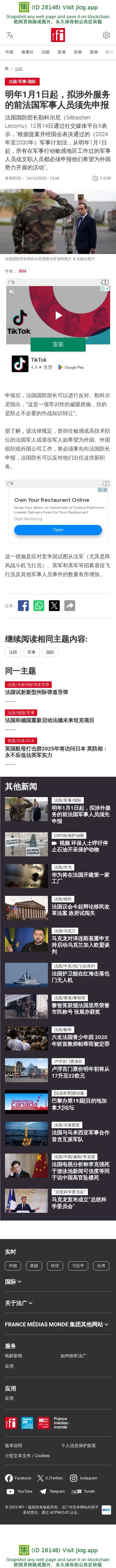 新闻原始地址:https://www.rfi.fr/cn/%E6%B3%95%E5%9B%BD/20231214-%E6%98%8E%E5%B9%B41%E6%9C%881%E6%97%A5%E8%B5%B7%EF%BC%8C%E6%8B%9F%E6%B6%89%E5%A4%96%E6%9C%8D%E5%8A%A1%E7%9A%84%E5%89%8D%E6%B3%95%E5%9B%BD%E5%86%9B%E4%BA%8B%E4%BA%BA%E5%91%98%E9%A1%BB%E5%90%91%E6%94%BF%E5%BA%9C%E7%94%B3%E6%8A%A5