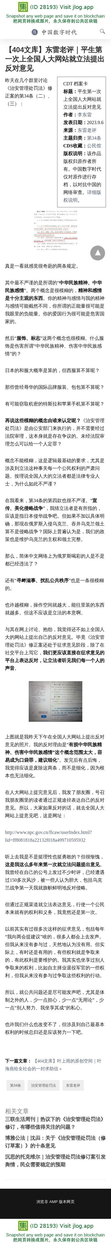 【404文库】东雷老评|平生第一次上全国人大网站就立法提出反对意见