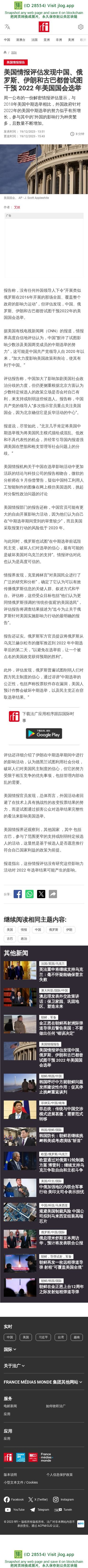 新闻原始地址:https://www.rfi.fr/cn/%E5%9B%BD%E9%99%85/20231219-%E7%BE%8E%E5%9B%BD%E6%83%85%E6%8A%A5%E8%AF%84%E4%BC%B0%E5%8F%91%E7%8E%B0%E4%B8%AD%E5%9B%BD-%E4%BF%84%E7%BD%97%E6%96%AF-%E4%BC%8A%E6%9C%97%E5%92%8C%E5%8F%A4%E5%B7%B4%E9%83%BD%E6%9B%BE%E8%AF%95%E5%9B%BE%E5%B9%B2%E9%A2%84-2022-%E5%B9%B4%E7%BE%8E%E5%9B%BD%E5%9B%BD%E4%BC%9A%E9%80%89%E4%B8%BE