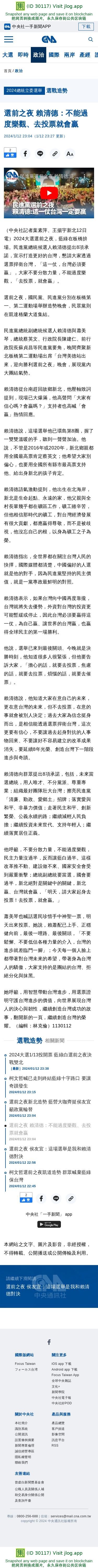 選前之夜 賴清德:不能過度樂觀、去投票就會贏 | 政治 | 中央社 CNA