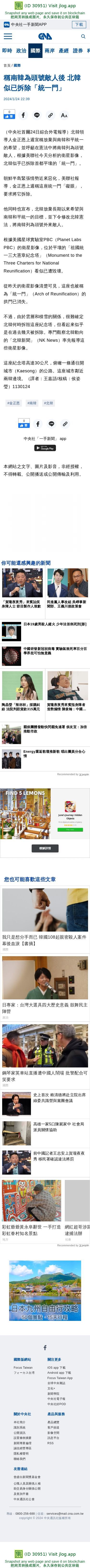 稱南韓為頭號敵人後 北韓似已拆除「統一門」 | 國際 | 中央社 CNA