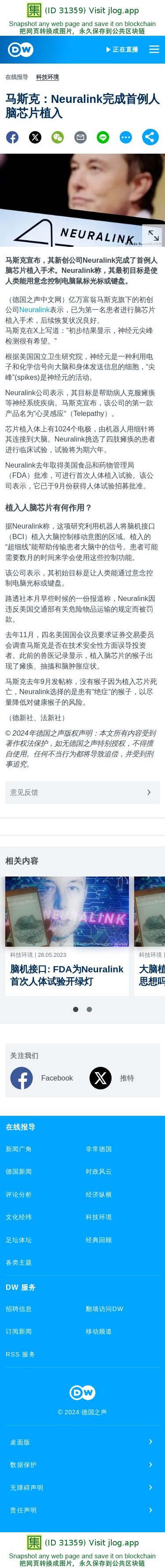 新闻原始地址:https://www.dw.com/zh/马斯克neuralink完成首例人脑芯片植入/a-68124178