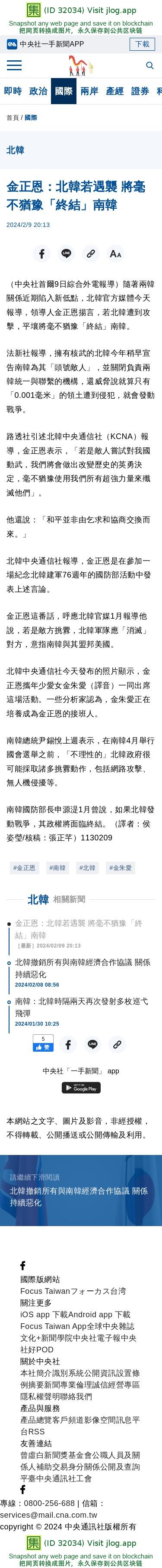 金正恩:北韓若遇襲 將毫不猶豫「終結」南韓 | 國際 | 中央社 CNA
