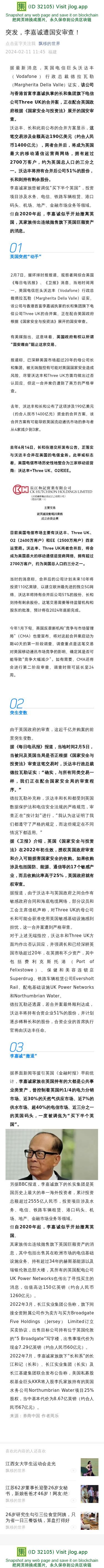 突发,李嘉诚遭国安审查!