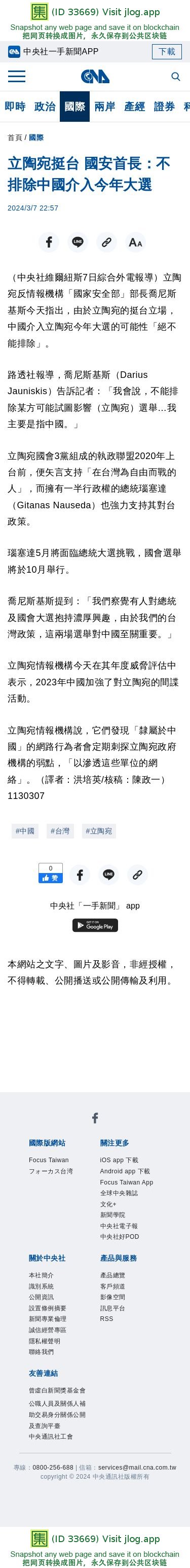 立陶宛挺台 國安首長:不排除中國介入今年大選 | 國際 | 中央社 CNA