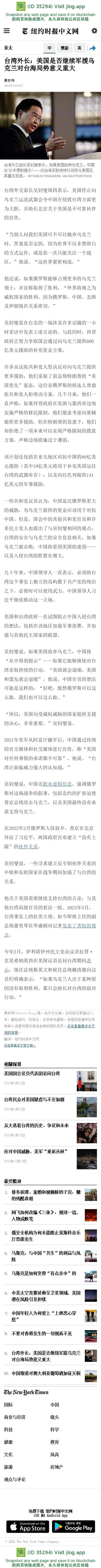 台湾外长:美国是否继续军援乌克兰对台海局势意义重大 - 纽约时报中文网