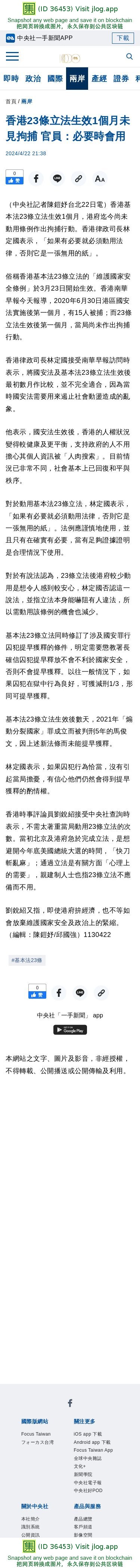 香港23條立法生效1個月未見拘捕 官員:必要時會用 | 兩岸 | 中央社 CNA