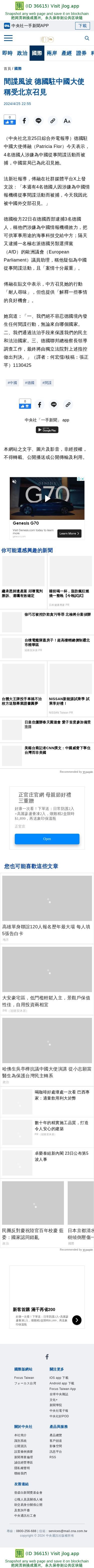 間諜風波 德國駐中國大使稱受北京召見 | 國際 | 中央社 CNA