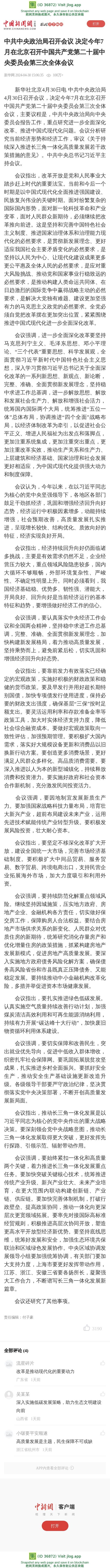 中共中央政治局召开会议 决定今年7月在北京召开中国共产党第二十届中央委员会第三次全体会议