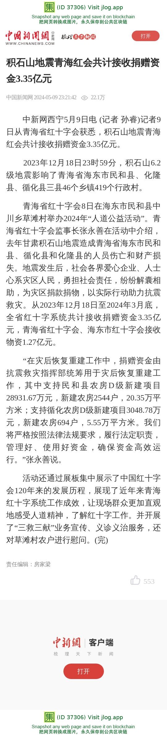 积石山地震青海红会共计接收捐赠资金3.35亿元