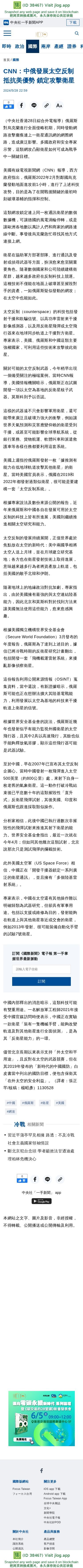 CNN:中俄發展太空反制抵抗美優勢 鎖定攻擊衛星 | 國際 | 中央社 CNA